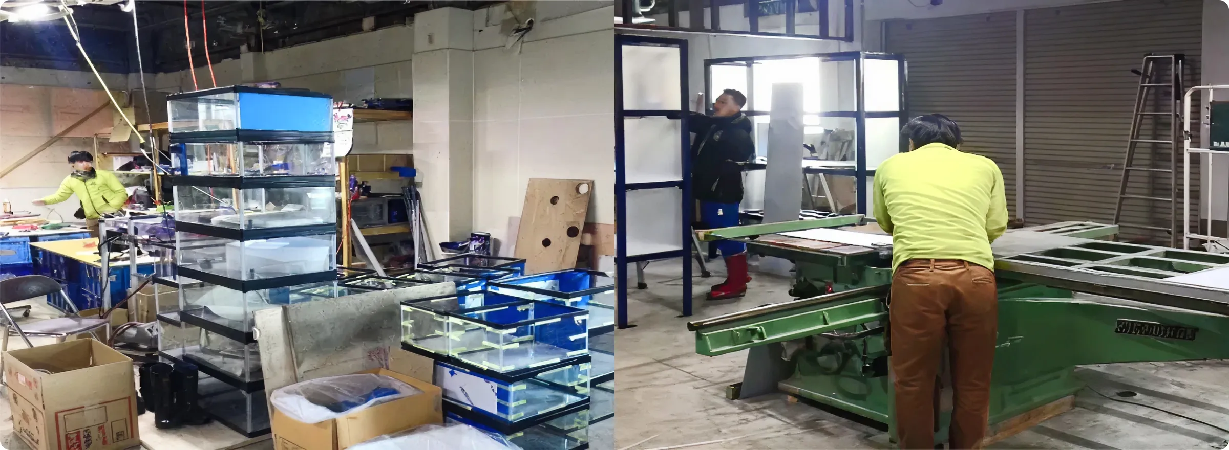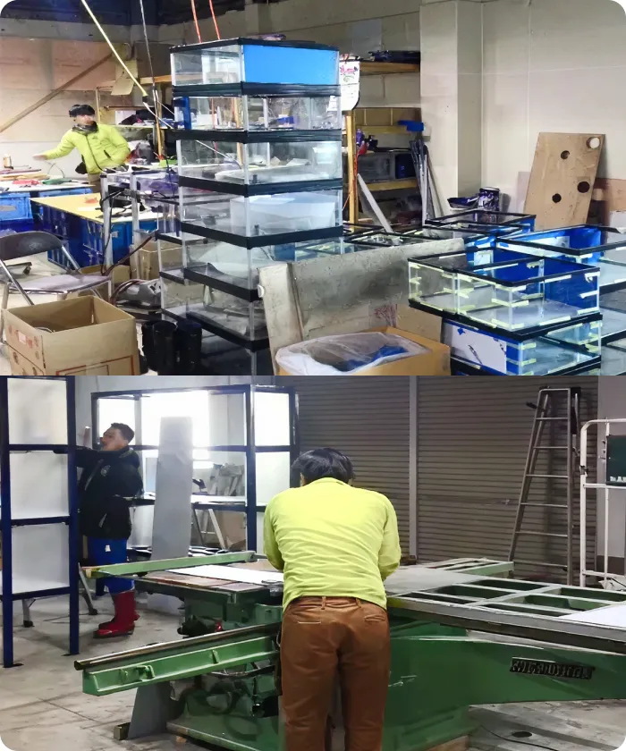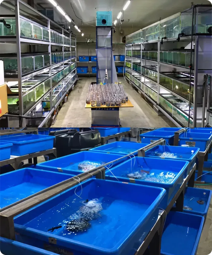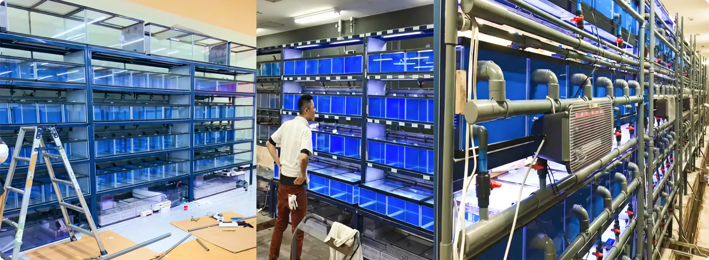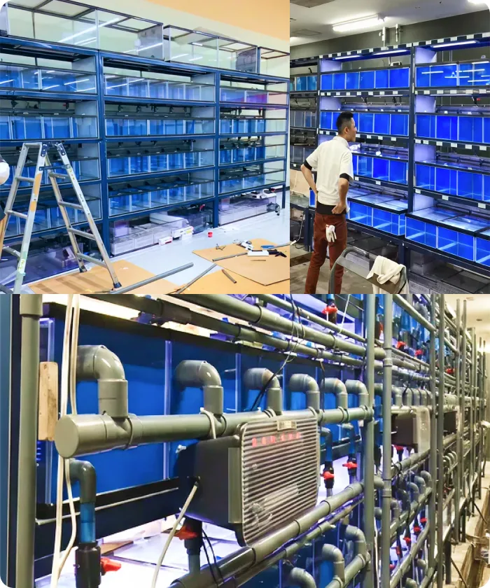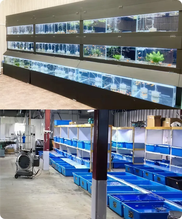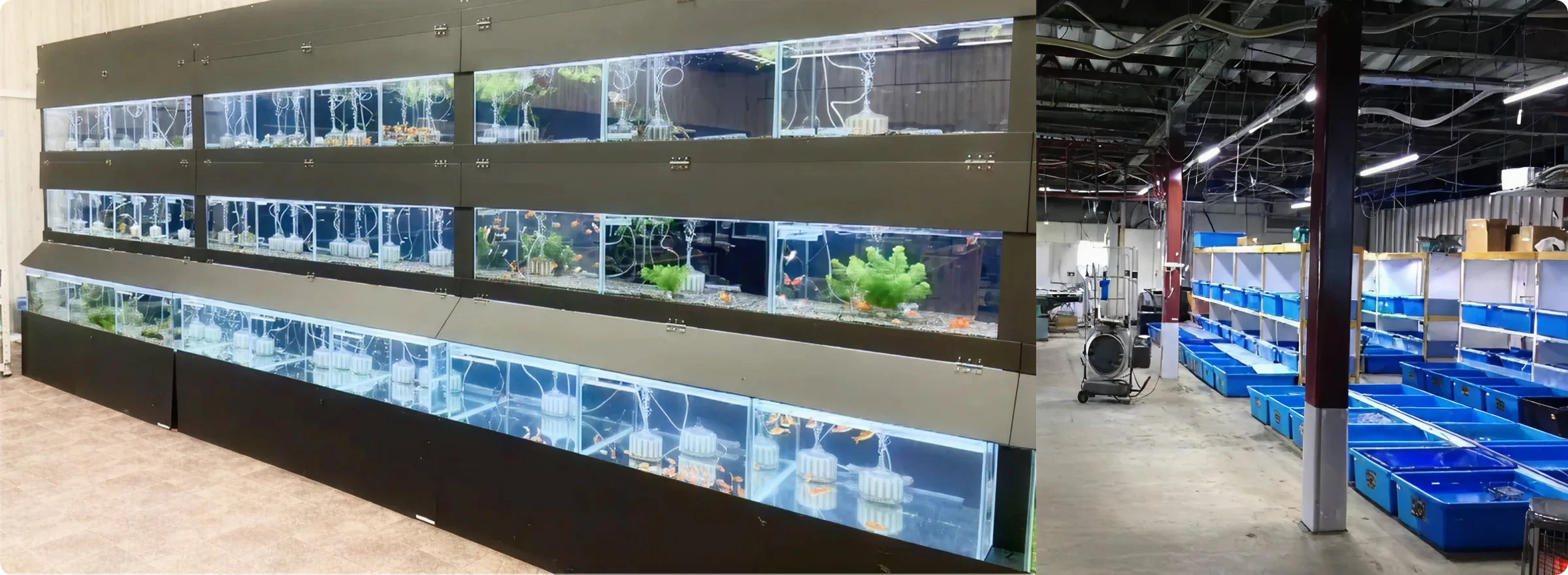 自社で観賞魚を在庫・管理し、常にコンディションの整った生体を安定供給。店舗水槽の設計・製造・設置・メンテナンスまで一括対応し、“売れる・維持できる”生体売場をトータルで構築します。