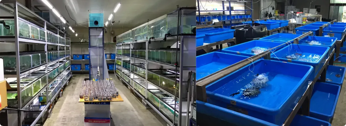 魚生体の安定供給を目指し、自社施設内で在庫管理を行う水質や温度管理、餌やりなど健康状態を維持する工夫が必要