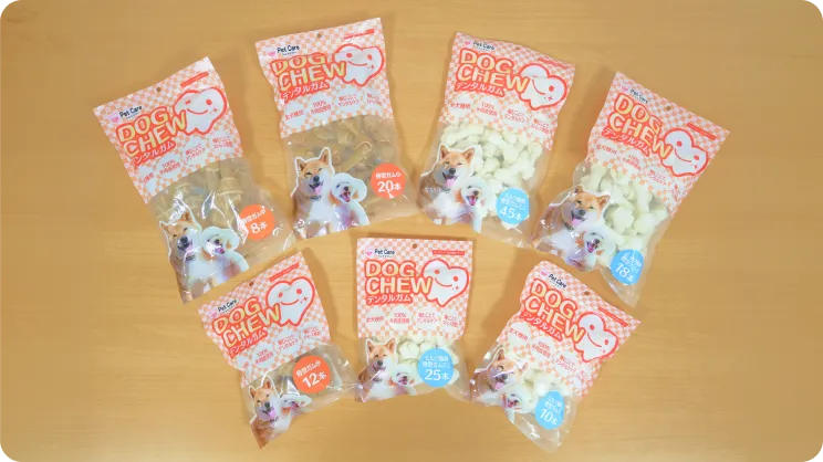 「DOG CHEW(ドッグチュー)」は天然牛皮を原料とした愛犬用デンタルガムです。愛犬が夢中になって噛むことで、歯と歯ぐきの健康をサポートし健やかな毎日へ導きます。